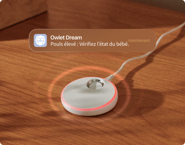 Lorsque le rythme cardiaque ou le taux d'oxygène de votre bébé sortent des zones de sécurité prédéfinies, vous recevez immédiatement des notifications de santé via la station de base et l'application Owlet Dream.