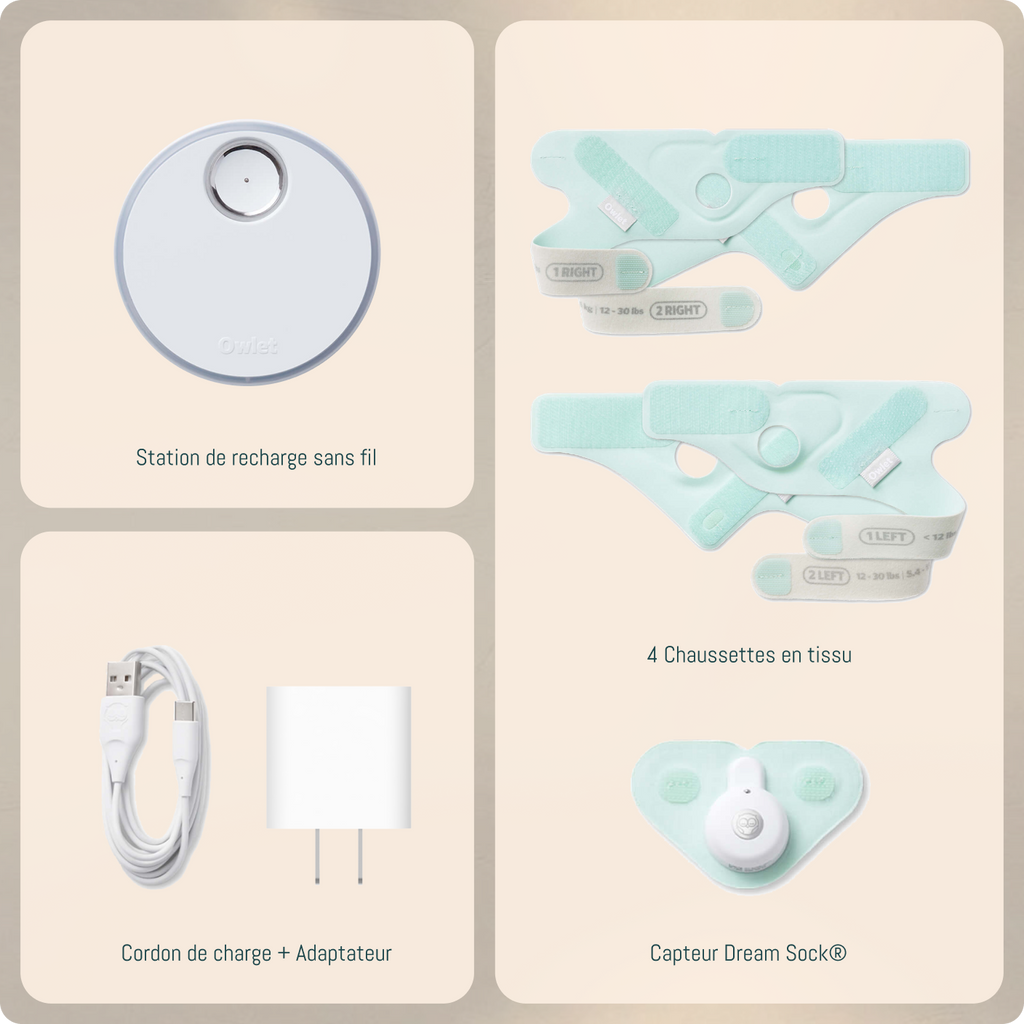 Le système de surveillance intelligent pour bébé Owlet Dream SockTM apporte une totale tranquillité d’esprit aux parents. Ce premier système médicalement certifié enveloppe confortablement le pied de votre bébé, pour surveiller son pouls, son taux d'oxygène et ses habitudes de sommeil en temps réel. Sa technologie avancée offre une précision cliniquement prouvée, et l'application Owlet Dream fournit des lectures en direct sur votre mobile et sur une station de base à proximité pour savoir quand bébé a besoin d’attention immédiate. Dream Sock, l'équilibre parfait entre technologie et sécurité, pour une tranquillité d'esprit totale. Dream Sock est destiné à être utilisé chez des bébés en bonne santé de 0 à 18 mois et de 2,5 à 13,6 kg.